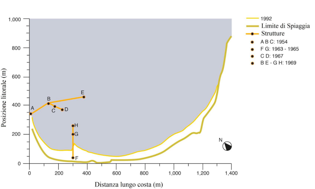 “Dall’analisi delle linee di costa possiamo, dunque, ricondurre la causa principale dell’erosione della spiaggia all’estensione del porto avvenuta nel 1969. A conferma di tale ipotesi, uno studio condotto da Hanson nel 1993, mediante simulazioni che vedono l’utilizzo di metodi numerici, dimostra che fu proprio la modifica del ‘69 a causare l’erosione della spiaggia. “